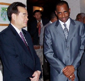 ![]() Prime Minister Roosevelt Skerrit with China’s ambassador to Dominica, Deng Boqing at the signing. |