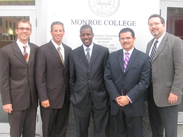 Approximately 30 Dominican students attend Monroe College, as do several Dominicans who have become permanent residents of the United States. Pictured with the Minister, center, is left to right, Craig Patrick, vice president of marketing, Marc Jerome, executive vice president, Gersom Lopez, director of international admissions, and Anthony Allen, vice president of enrollment and campus dean.